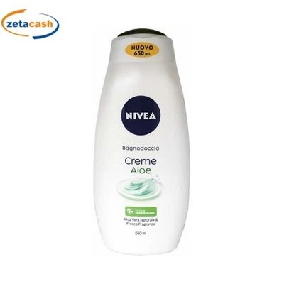Nivea bagnodoccia Creme Aloe da 650 ml,nutriente per una sensazione di pelle idratata con pro vitamina B5 e oli nutrienti. Avvolge la pelle con una soffice schiuma in equilibrio con il ph e con una tollerabilità cutanea dermatologicamente comprovata.