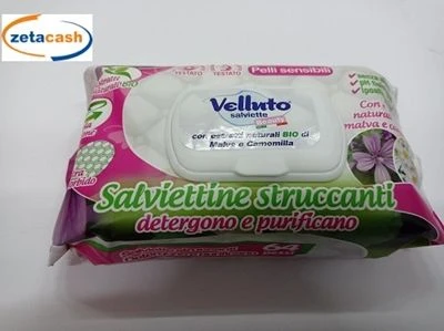 Confezione 64 salviettine stuccanti per pelli sensibili con malva e camomilla.
